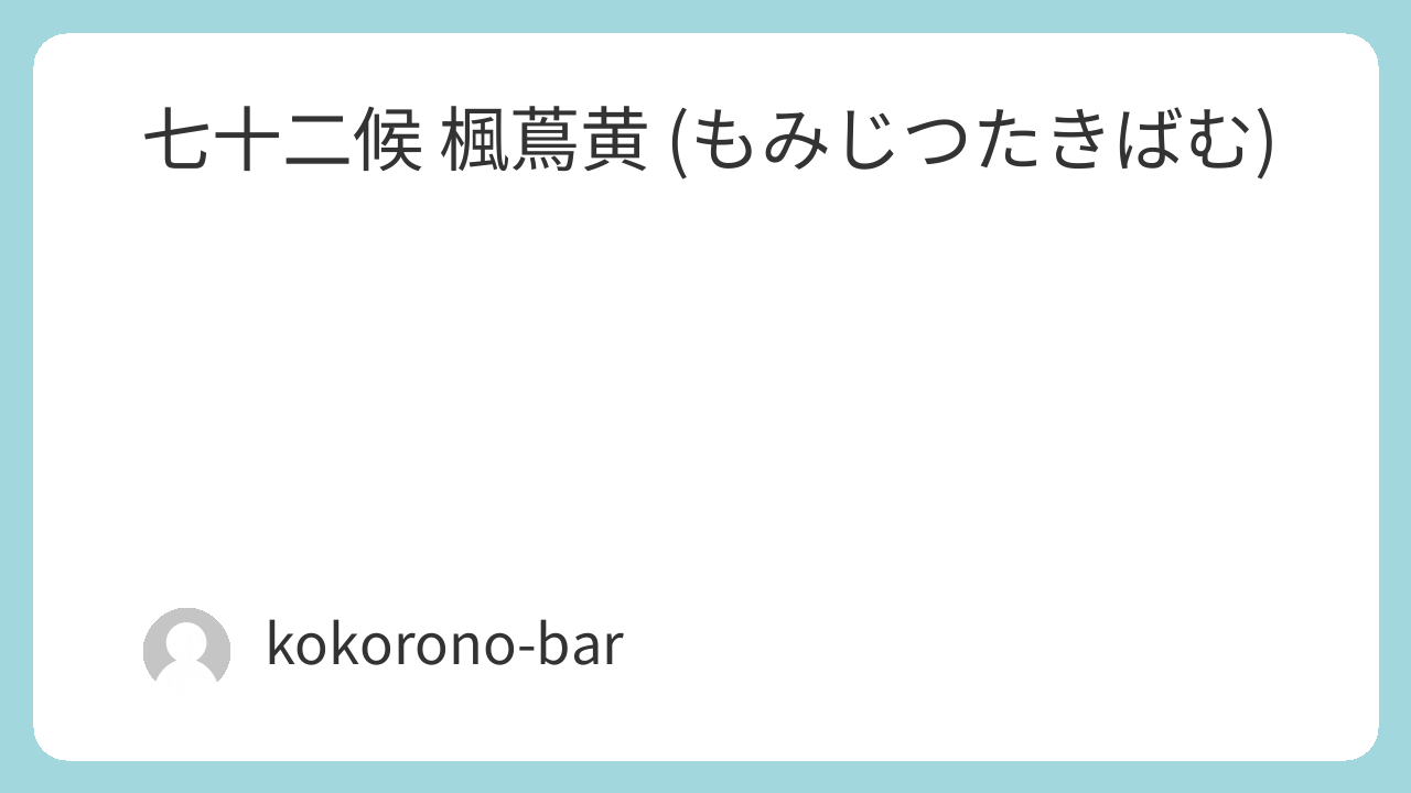 七十二候は一年を72に分け、自然や生き物の微細な変化を表す日本独自の暦です。楓蔦黄は寒露後の次候で、山の楓や蔦の葉が黄や赤に色づく時期を指します。秋の深まりを感じる象徴的な季節です。