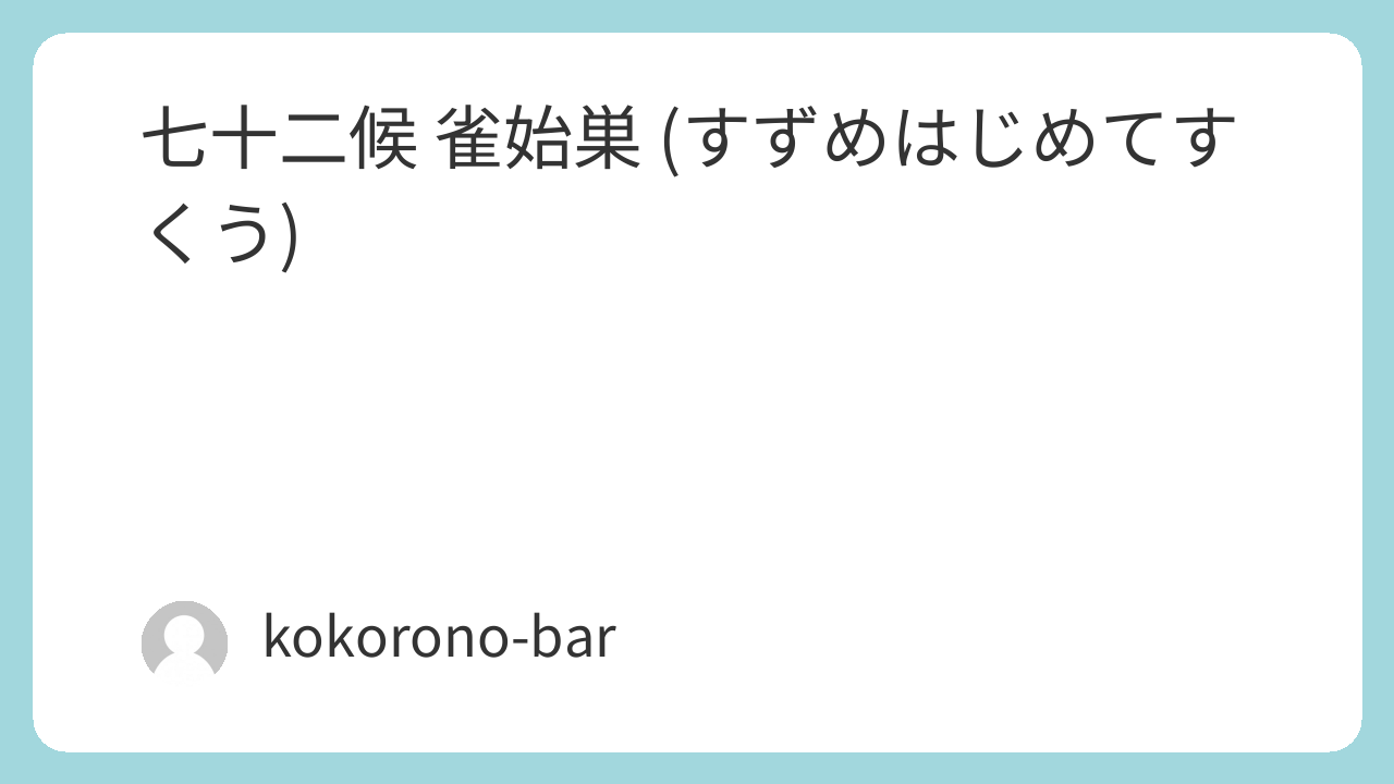 七十二候は一年を72の季節に分け、自然や生き物の変化を言葉で表現した日本独自の暦です。雀始巣は春分の後の次候で、雀が巣作りを始める時期を示します。小鳥の活動が本格化するこの時期、春の到来を体感できる象徴的な季節です。