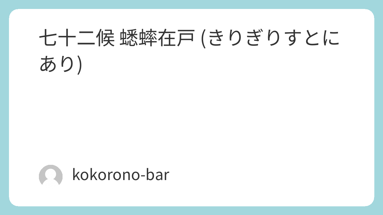 七十二候「蟋蟀在戸(きりぎりすとにあり)」は、秋の終わりに虫の声が戸口近くで響く季節を表します。澄んだ音色が夜を彩り、季節の深まりを感じさせてくれます。