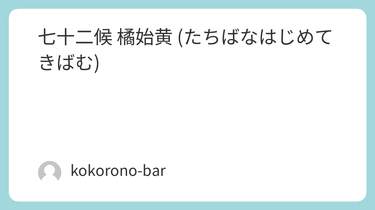 第六十候 橘始黄 (たちばなはじめてきばむ) | 七十二候