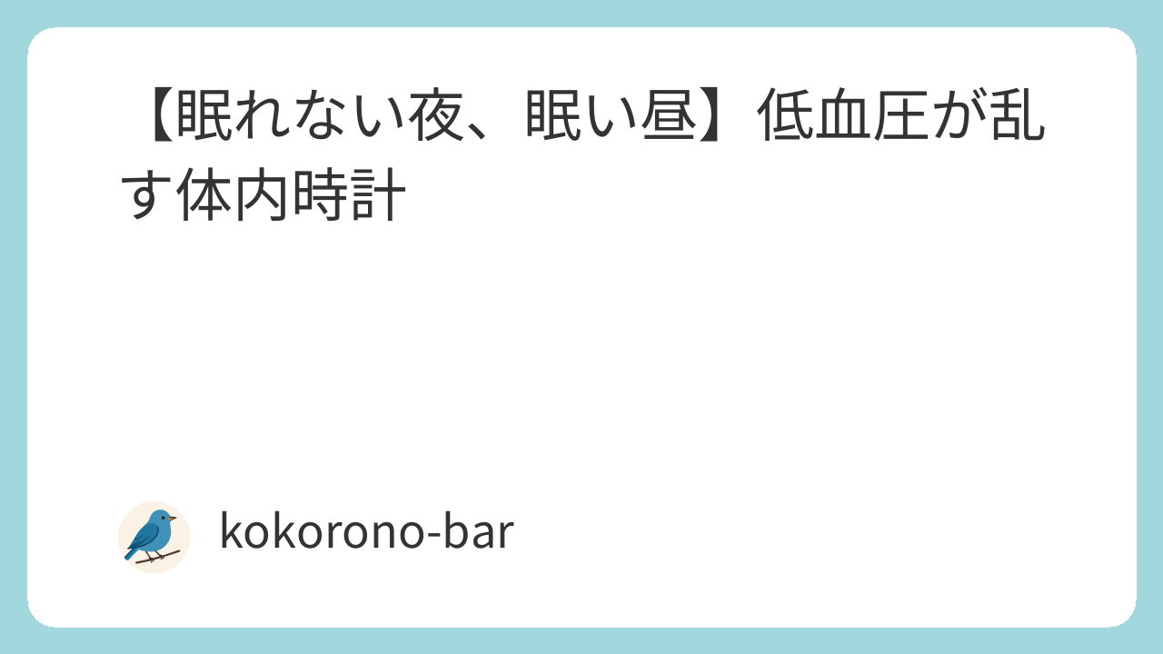 【眠れない夜、眠い昼】低血圧が乱す体内時計