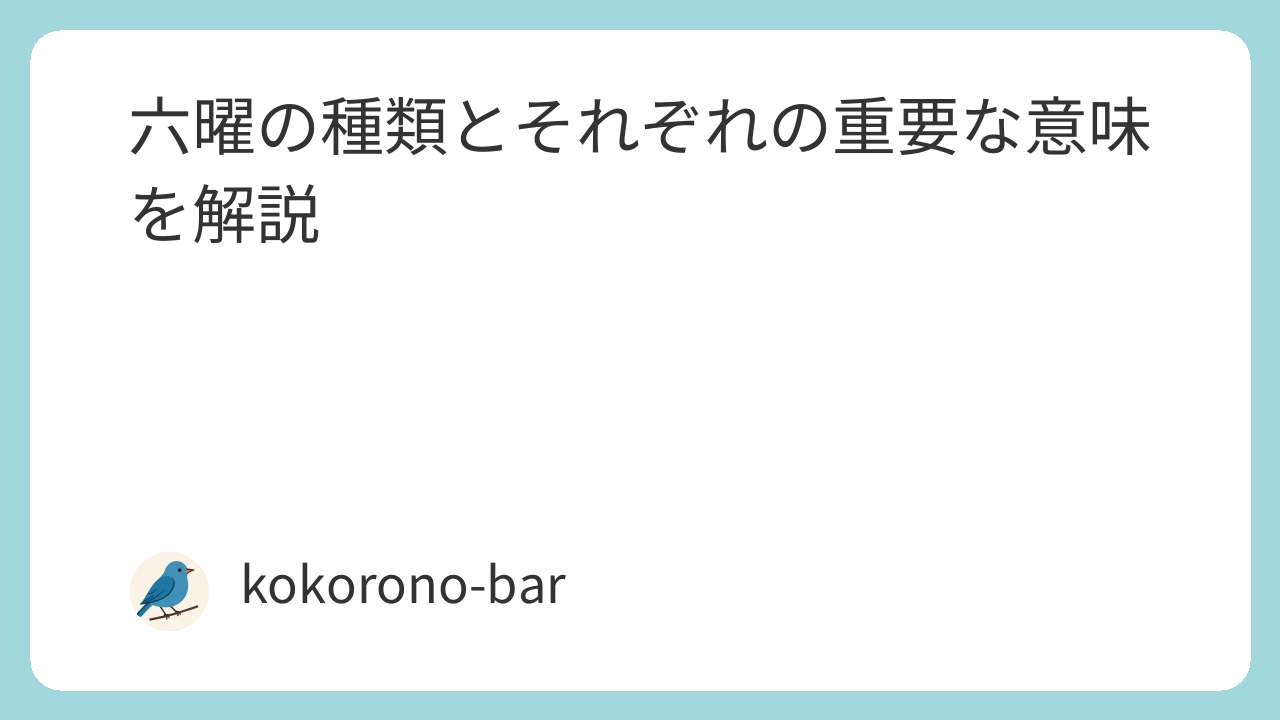 六曜(ろくよう)は、日本の伝統的な暦における吉凶を示すシステムで、特に日常生活の活動や行動計画に影響を与えるとされています。このシステムは、古代中国の思想が日本に伝わる過程で発展し、特に平安時代以降に広まりました。六曜は、日々の運勢を知るための簡便な方法として、多くの人々に利用されています。本記事では、六曜の基本概念とその歴史的背景、それぞれの六曜の意味を詳しく探っていきます。