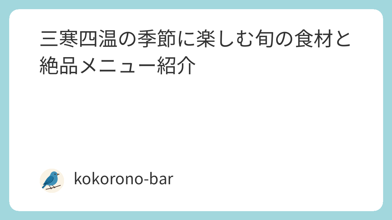 三寒四温の季節は、私たちに新たな食材や料理を楽しむ機会を与えてくれます。旬の食材を利用した絶品メニューは、家庭でも簡単に作ることができ、家族で囲む食卓を華やかにしてくれます。この春、ぜひ旬の食材を取り入れた料理を楽しんで、心温まるひとときを過ごしてください。