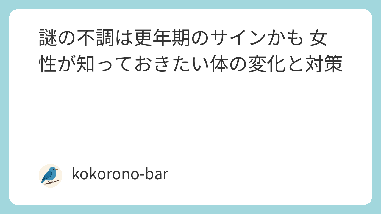 謎の不調が続くとき、更年期は「年齢だから仕方ないもの」ではなく、体の変化に合わせてケアや治療を選べる状態です。症状を把握し、受診のタイミングを逃さず、睡眠・運動・食事を少しずつ整えることで、日常はぐっと楽になります。一人で抱え込まず、医療と周囲の力も借りながら、これからの体と上手に付き合っていきましょう。