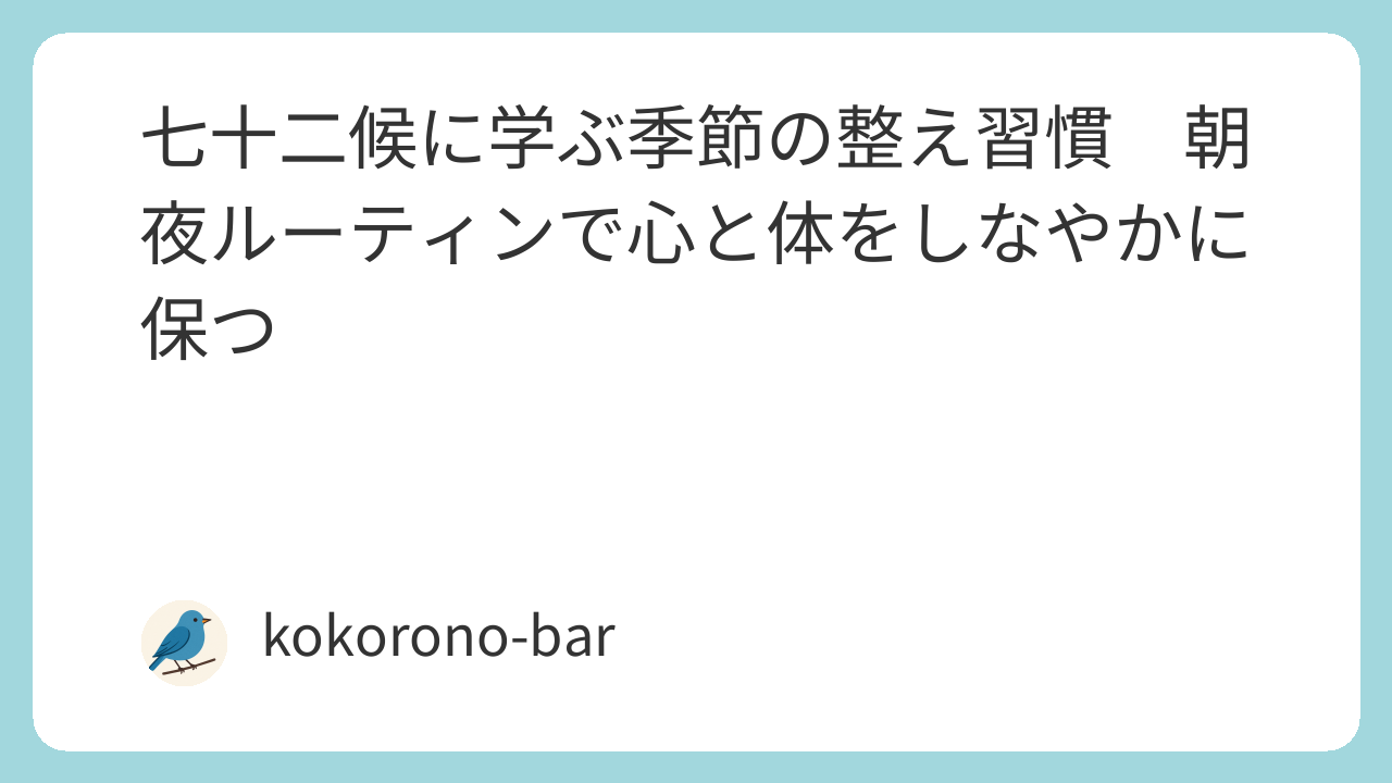 季節に寄り添い、自分を整える時間を大切にすることは、特別なことではなく、日々の積み重ねから生まれる豊かさです。七十二候という古の知恵は、現代を生きる私たちに「自然とともにある心地よさ」を再び思い出させてくれます。朝の光と夜の静けさに身を委ね、季節ごとの小さなルーティンを楽しみながら、しなやかに生きるリズムを取り戻していきましょう。