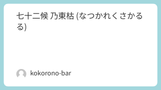 七十二候 第二十八候 乃東枯 (なつかれくさかるる) | 七十二候 七十二候「乃東枯(なつかれくさかるる)」は、夏枯草(ウツボグサ)が枯れ始める頃を表します。初夏の生命力あふれる季節に、ひとつの草が静かに役目を終える自然のリズムです。 乃東枯とはどんな季節か 「乃東枯」は二十四節気「夏至」の初候にあたり、例... 2025.09.27 七十二候四季・暦