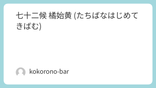 七十二候 第六十候 橘始黄 (たちばなはじめてきばむ) | 七十二候 冬の終わり、橘の果実が黄色く色づき始める七十二候の一つ、橘始黄(たちばなはじめてきばむ)。鮮やかな黄色は冬の名残と春の兆しを感じさせ、季節の移ろいを象徴します。例年は12月下旬から1月上旬にあたります。 橘始黄とはどんな季節? 七十二候は一... 2025.09.28 七十二候四季・暦