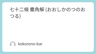 七十二候 第六十五候 麋角解 (さわしかのつのおつる) | 七十二候 春が近づくとともに雄鹿の角が落ち始める七十二候の一つ、麋角解(おおしかのつのおつる)。冬の間に成長した角が脱落し、春の再生へ向けた準備を始める時期を示します。例年は3月上旬から中旬にあたります。 麋角解とはどんな季節? 七十二候は一年を72... 2025.09.28 七十二候四季・暦