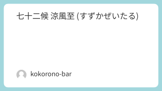 七十二候 第三十七候 涼風至 (すずかぜいたる) | 七十二候 七十二候「涼風至(すずかぜいたる)」は、夏の熱気が和らぎ、心地よい涼風が吹き始める頃を表します。厳しい暑さの中に秋の兆しを感じる、季節の変わり目の候です。 涼風至とはどんな季節か 「涼風至」は二十四節気「立秋」の初候にあたり、例年8月上旬に... 2025.09.27 七十二候四季・暦