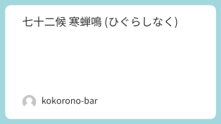 七十二候 第三十八候 寒蝉鳴 (ひぐらしなく) | 七十二候 七十二候「寒蝉鳴(ひぐらしなく)」は、夏の終わりにひぐらしが鳴き始める頃を表します。物悲しくも澄んだ声が響き、季節の移ろいと涼しさを告げる合図となります。 寒蝉鳴とはどんな季節か 「寒蝉鳴」は二十四節気「処暑」の初候にあたり、8月下旬頃を示... 2025.09.27 七十二候四季・暦