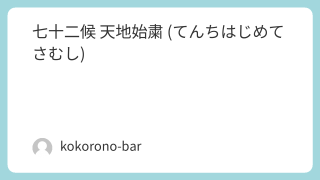 七十二候 第四十一候 天地始粛 (てんちはじめてさむし) | 七十二候 七十二候「天地始粛(てんちはじめてさむし)」は、夏の暑さが和らぎ、大地も空も次第に冷えはじめる頃を表します。自然が静まり、秋への入口を感じさせる節目です。 天地始粛とはどんな季節か 「天地始粛」は二十四節気「処暑」の末候にあたり、9月初旬頃... 2025.09.27 七十二候四季・暦