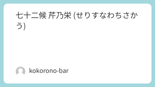 七十二候 第六十七候 芹乃栄 (せりすなわちさかう) | 七十二候 春の訪れとともに野山や水辺でせりが繁茂し始める七十二候の一つ、芹乃栄(せりすなわちさかう)。水辺の植物が力強く成長する様子は、春の生命力を象徴します。例年は3月上旬から中旬にあたります。 芹乃栄とはどんな季節? 七十二候は一年を72に分け、... 2025.09.26 七十二候四季・暦