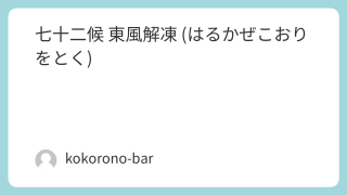 七十二候 第一候 東風解凍 (はるかぜこおりをとく) | 七十二候 春の暖かい風が吹き、冬の氷や雪を溶かし始める七十二候の一つ、東風解凍(はるかぜこおりをとく)。東からの春風が大地を温め、川や池の氷が解ける時期を示します。例年は2月下旬から3月上旬にあたります。 東風解凍とはどんな季節? 七十二候は一年を7... 2025.09.27 七十二候四季・暦