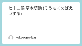 七十二候 第六候 草木萌動 (そうもくめばえいずる) | 七十二候 春も本格的に進む七十二候の一つ、草木萌動(そうもくめばえいずる)。木々や草が芽吹き、緑が目立ちはじめる頃を示し、例年は3月下旬から4月上旬にあたります。芽吹きは春の生命力を象徴し、自然の息吹を感じさせてくれる季節です。 草木萌動とはどんな季... 2025.09.25 七十二候四季・暦